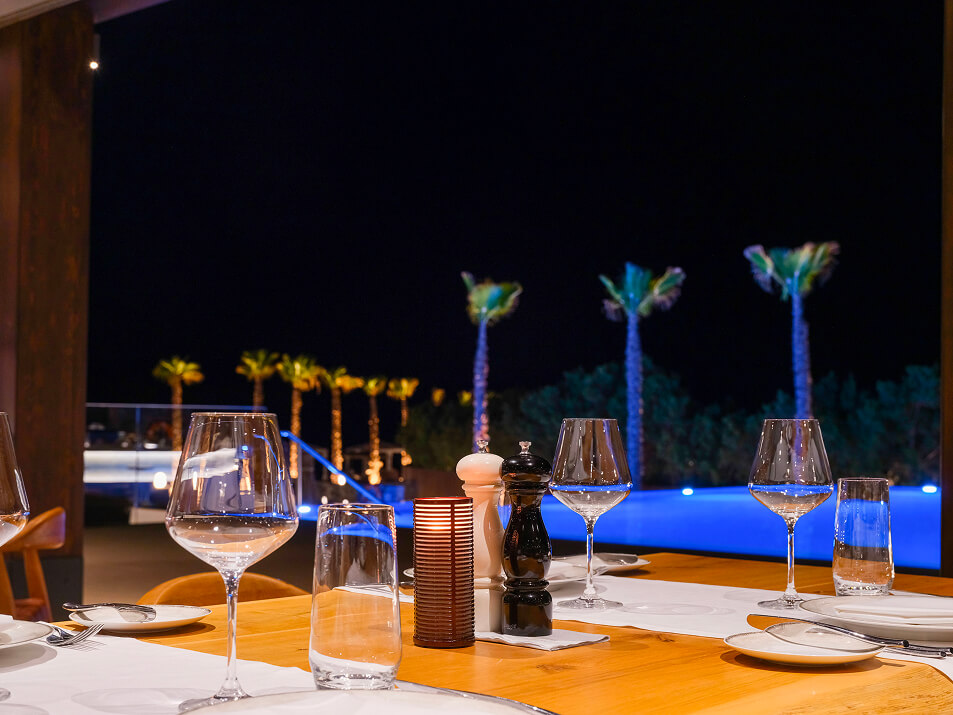 In the evening, the restaurant evolves into a more sophisticated dining destination. The focus turns to premium meat cuts, expertly prepared to highlight quality and flavour, alongside contemporary international recipes crafted with culinary precision. Complementing the menu is a curated wine list featuring distinguished Greek and international labels, allowing for refined and balanced pairings.